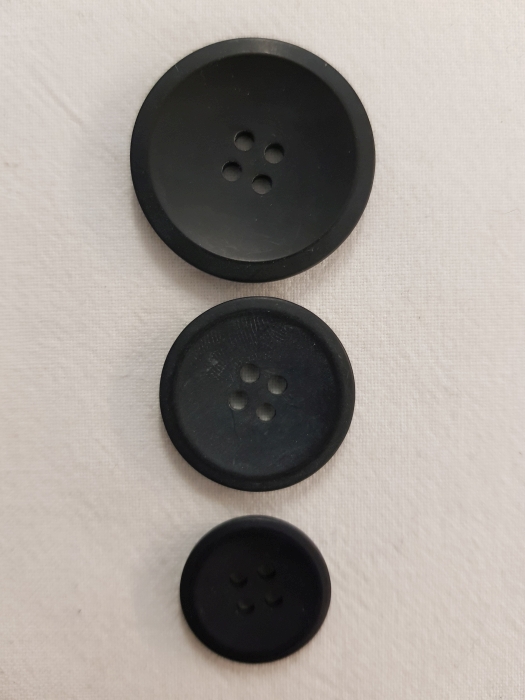 Ein schlichter blauer Kunststoffknopf, 4 Loch in den Größen 16/20/28 mm.