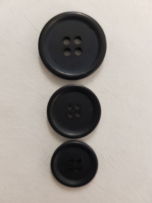 Ein klassischer Knopf in marineblau, matt, 4 Loch in den Größen 20/22/28 mm. Diese Knöpfe eignen sich für Sakkos, Blazer aber auch für Mäntel.