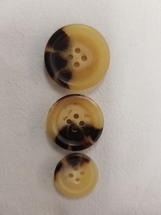 Melierter Knopf mit Rand in beige-braun, 4 Loch in den Größen 18/20/25 mm. Geeignet für Blazer, Sakkos, Damen & Herren Jacken aller Art sowie auch für Strickwaren.