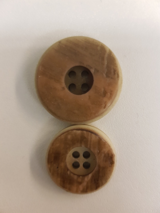 Hornknopf in braun-baige mit einer Vertiefung in der Mitte, 4-Loch, in den Größen 22/28 mm. Diese Knöpfe eignen sich nicht nur für Trachtenmode, sondern auch für Blazer, Sakkos und Strickwaren aller Art.