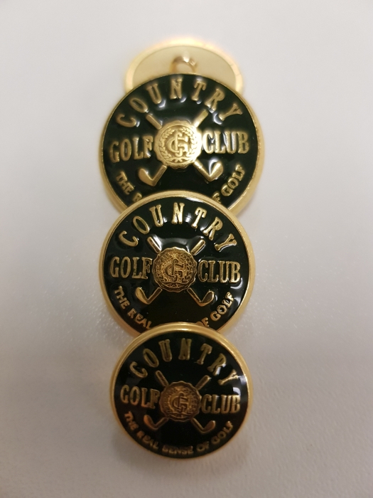 Ein besonders gut aussehender Ösenknopf, gewölbt in dunkelgrün mit goldener Schrift ( 2 Varianten) in den Größen 16/20/25 mm. Besonders gut geeignet für Blazer und Sakkos.