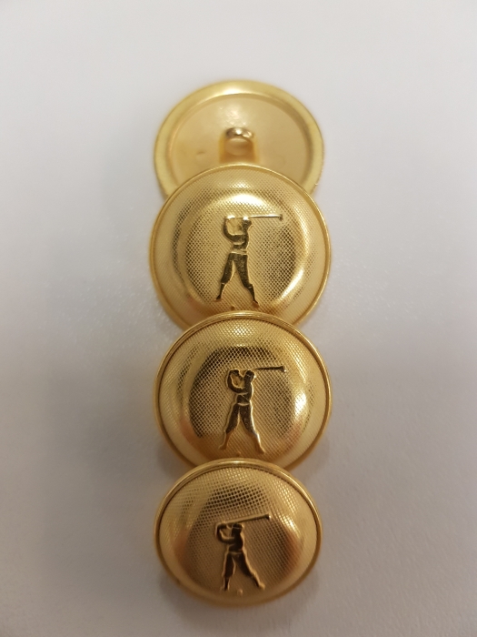 Goldener Ösenknopf aus Metall mit einem Golfer als Relief in den Größen 18/20/22 mm. Gut geeignet für Blazer und Sakkos, insbesonders für dickere Strickwaren und Stoffe.