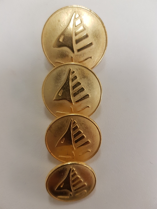 Ein sehr schöner Knopf aus Metall in gold mit einem maritimen Motiv in den Größen 18/20/22/25 mm. Besonders gut geeignet für Sakkos, Blazer und Jacken aller Art.