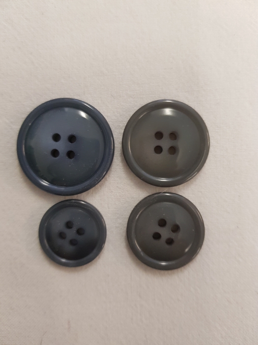 Ein eleganter, glänzender Knopf in blaugrau, in den Größen 16/18/25 mm. Besonders gut geeignet für Sakkos und Blazer sowie auch für Strickwaren aller Art.