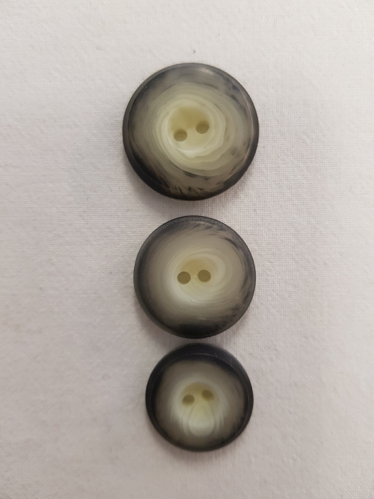Ein toller, 4 mm - dicker Hornknopf mit Farbverlauf in grau-creme, 2 Loch in den Größen 18/22/25 mm. Geeignet für Blazer, Sakkos, Damen & Herren Jacken und Mäntel aller Art sowie auch Strickwaren.