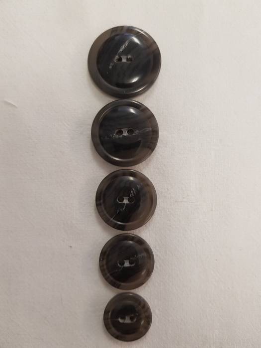 Ein gut aussehender Knopf in grau meliert, 2 Loch in den Größen 18/20/23/25/28 mm. Geeignet für Blazer, Sakkos, Damen und Herren Mäntel & Jacken aller Art sowie auch Strickwaren.