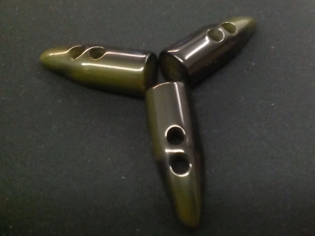2-Lochknebel, echt Horn inoliv-schwarz, 50mm