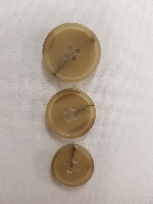 Kunststoffknopf mit Rand in graubeige-meliert, 4 Loch, 16/18/23mm. Geeignet für Jacken, Blazer sowie Damen und Herren Strickwaren.