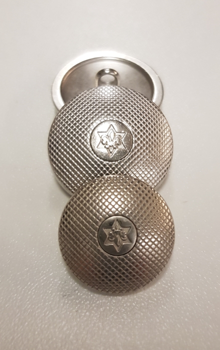 Außergewöhnlicher Metallknopf leicht gewölbt in silber mit einem Stern, in den Größen 18/22 mm. Besonders gut geeignet für Sakkos und Blazer sowie auch für dickere Strickwaren aller Art.