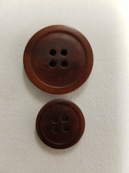Kunststoffknopf mit Rand in braun-meliert, 4 Loch, 18/25mm