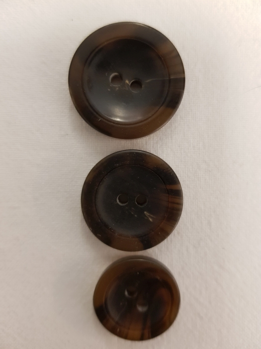 Hochwertiger, mitteldicker 2Lochknopf in dunkelbraun mit einem Farbverlauf in den Größen 18/20/25 mm. Geeignet für Blazer, Sakkos, Damen und Herren Jacken und Mäntel aller Art sowie auch Strickwaren.