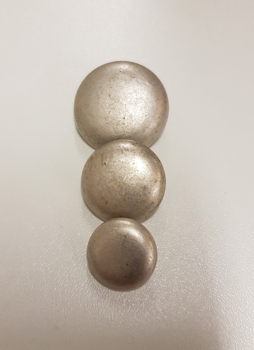 Gewölbter Metallknopf mit Öse in silber, in den Größen 18/22/28 mm.