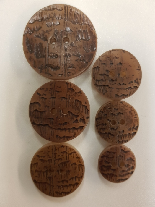 Brauner 2-Lochknopf aus Büffelhornimitat in den Größen 18/20/22/25/28/35 mm.