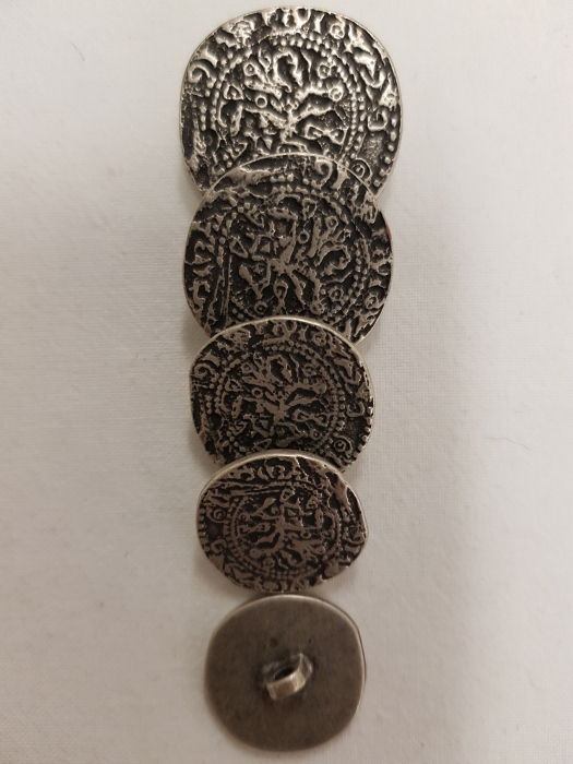 Ein netter, flacher Trachtenknopf aus Metall mit Öse in schwarz-silber mit einem interessantem Motiv 18/22/25/28 mm.