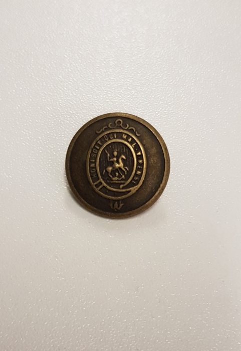 Metallknopf mit Öse in Altmessing mit einem Motiv, leicht gewölbt in 18 mm. Auch geeignet für Blazer und Sakkos.