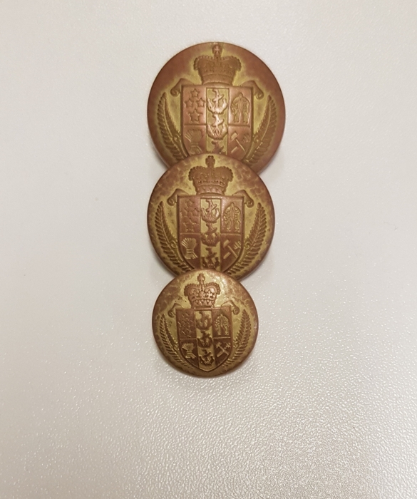 Ein ausgefallener Trachtenknopf in Kupfer- Gold mit Öse aus Metall mit Wappenmotiv in den Größen 18/22/25 mm.
