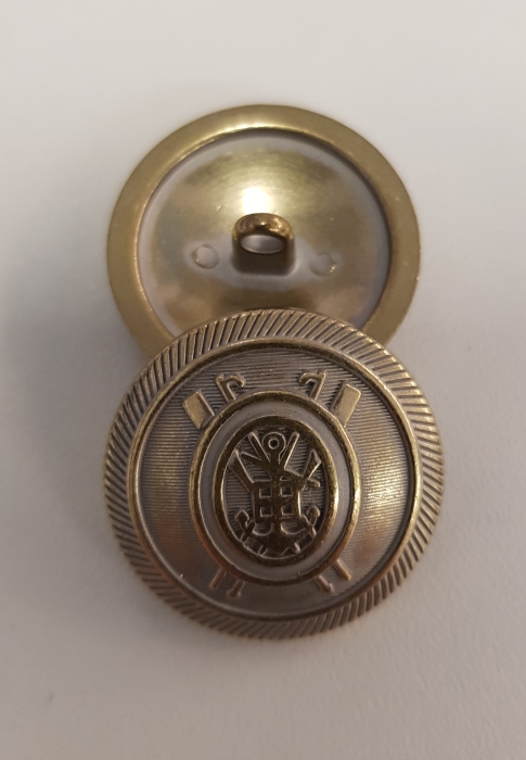 Hübscher Trachtenknopf mit Öse aus Metall in gold-silber mit einem Motiv in 25 mm.