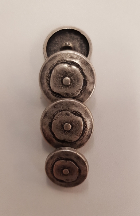 Schlichter Metallknopf mit Öse in antiksilber, in den Größen 18/22/25 mm.