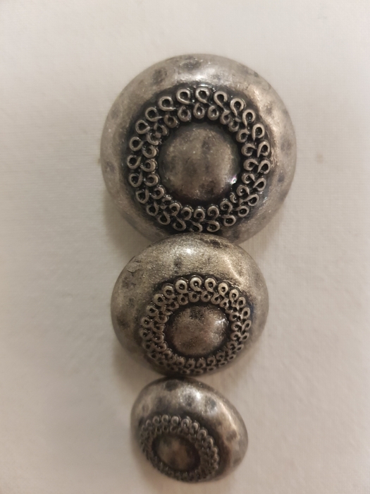 Ösenknopf in Metalloptik stark gewölbt in altsilber, in den Größen 18/22/28 mm.