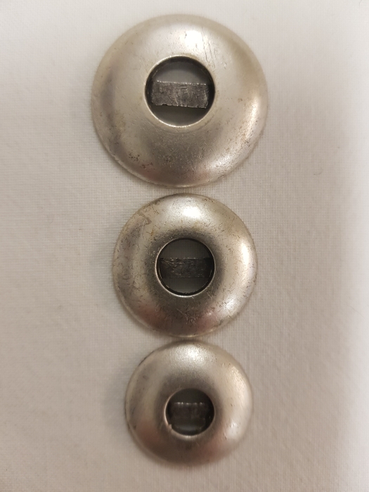 Interessanter Uniformknopf in silber aus Metall in den Größen 20/23/28 mm.