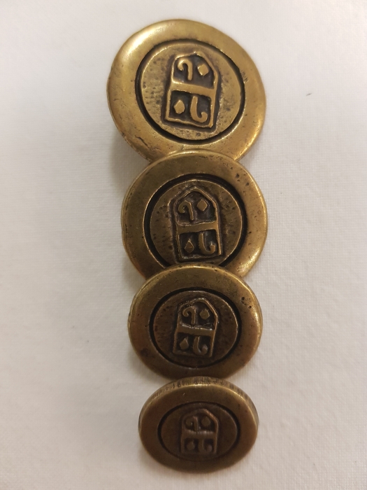 Ein interessanter Ösenknopf aus Metall in messing mit einem Muster in den Größen 18/20/22/25mm