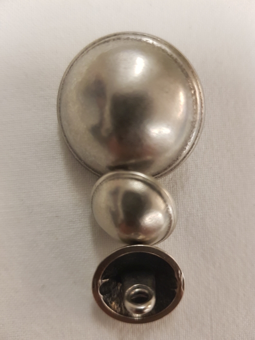 Kugelförmiger Metall - Uniformknopf mit Öse in silber-glänzend in den Größen 15 und 25 mm.