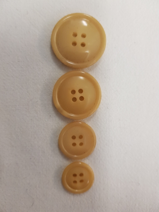 Kunststoffknopf in maisgelb-glänzend, 4 Loch, in den Größen 15/18/22/25mm. Gut geeignetfür Jacken, Blazer, Sakkos sowie Damen und Herren Strickwaren aller Art.