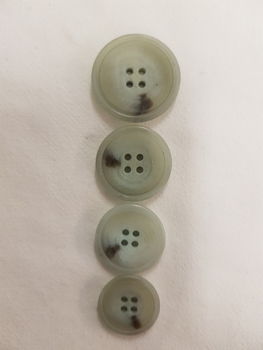 Ein ausgefallener Kunststoffknopf matt mit Farbverlauf in creme-grau meliert, 4 Loch, 18/20/23/27mm. Geeignet für Mäntel, Sakkos, Blazer, Strickwaren sowie Damen und Herren Oberbekleidung.