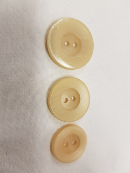 Ein sehr eleganter Kunststoffknopf mit goldenem Einsatz-Optik in beige, 4 Loch, 18/20/22mm. Geeignet für Damen und Herren Strickwaren, Blazer, Sakkos.