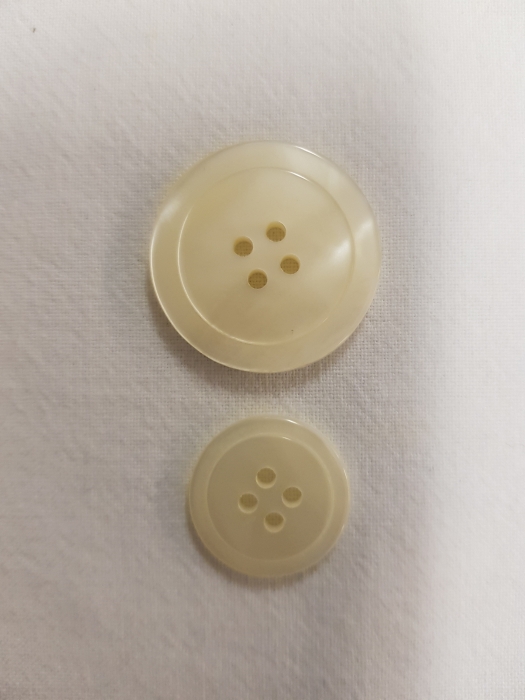 Ein funkelnder Knopf in Perlmuttoptik in creme-glänzend, 4 Loch, in den Größen 18/25mm. Geeignet für Jacken, Blazer, Sakkos, Strickjacken sowie Damen und Herren festlicher Kleidung.