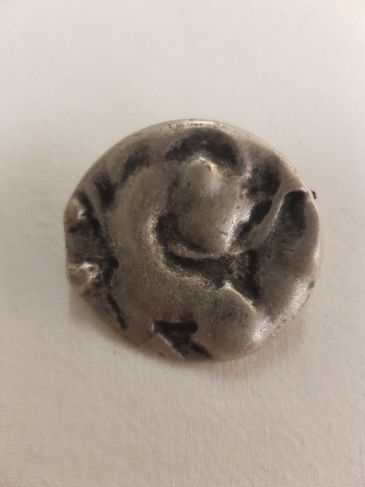 Interessanter Trachtenknopf aus Metall mit Öse in altsilber mit einem ausgefallenen Muster 30 mm.