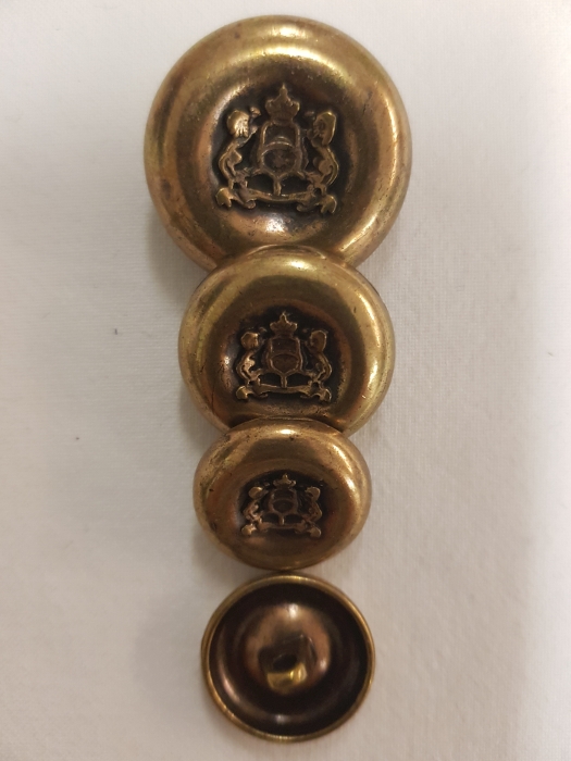 Trachtenknopf aus Metall mit Öse in altgold mit Wappen in den Größen 18/20/28mm
