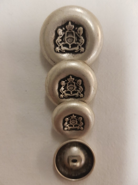 Trachtenknopf gewölbt mit Öse in silber mit einem Wappen in den Größen 18/20/28mm