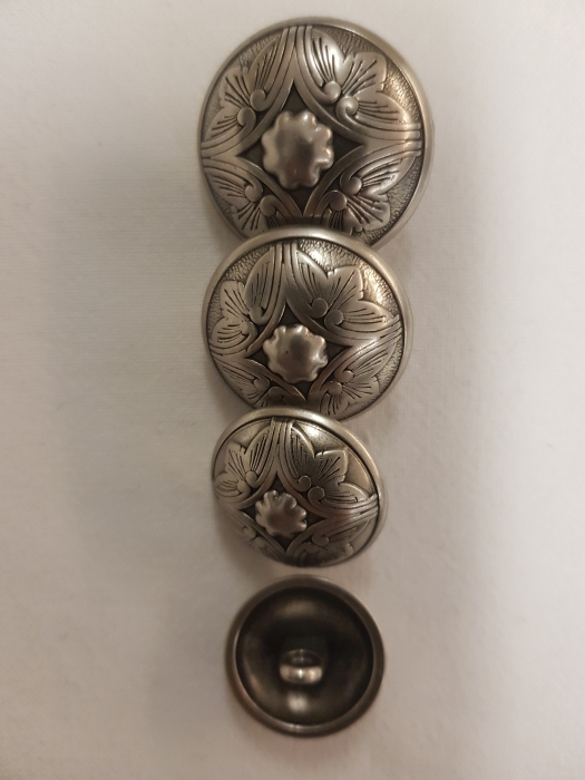 Ein ausgefallener Trachtenknopf gewölbt mit Öse in altsilber, 16/18/20/25mm