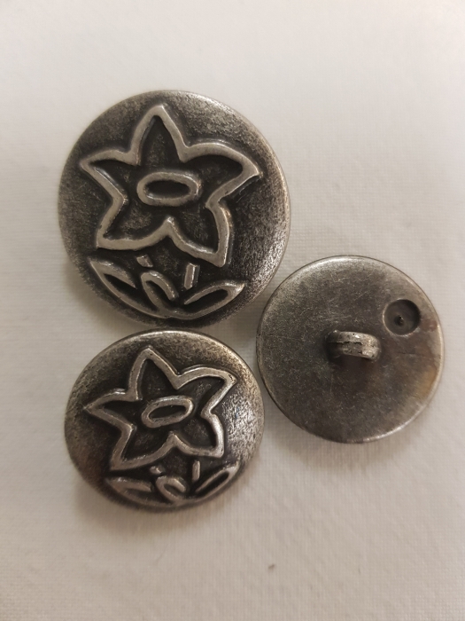 Ein hübscher Ösenknopf in Metalloptik, altsilber in den Größen 18/25 mm.