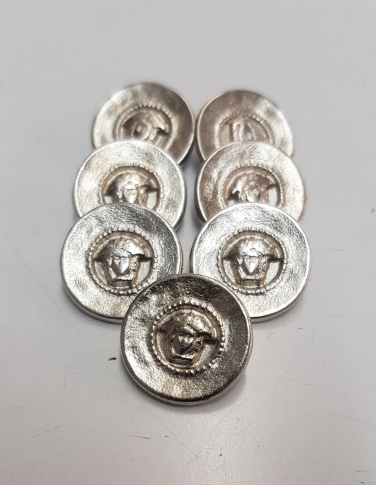 Toller, glänzender Echtmetallknopf mit Öse in silber. Als 7er Set in 20 mm auch als 7er Set in 18 mm und als 10er Set in 15 mm erhältlich.